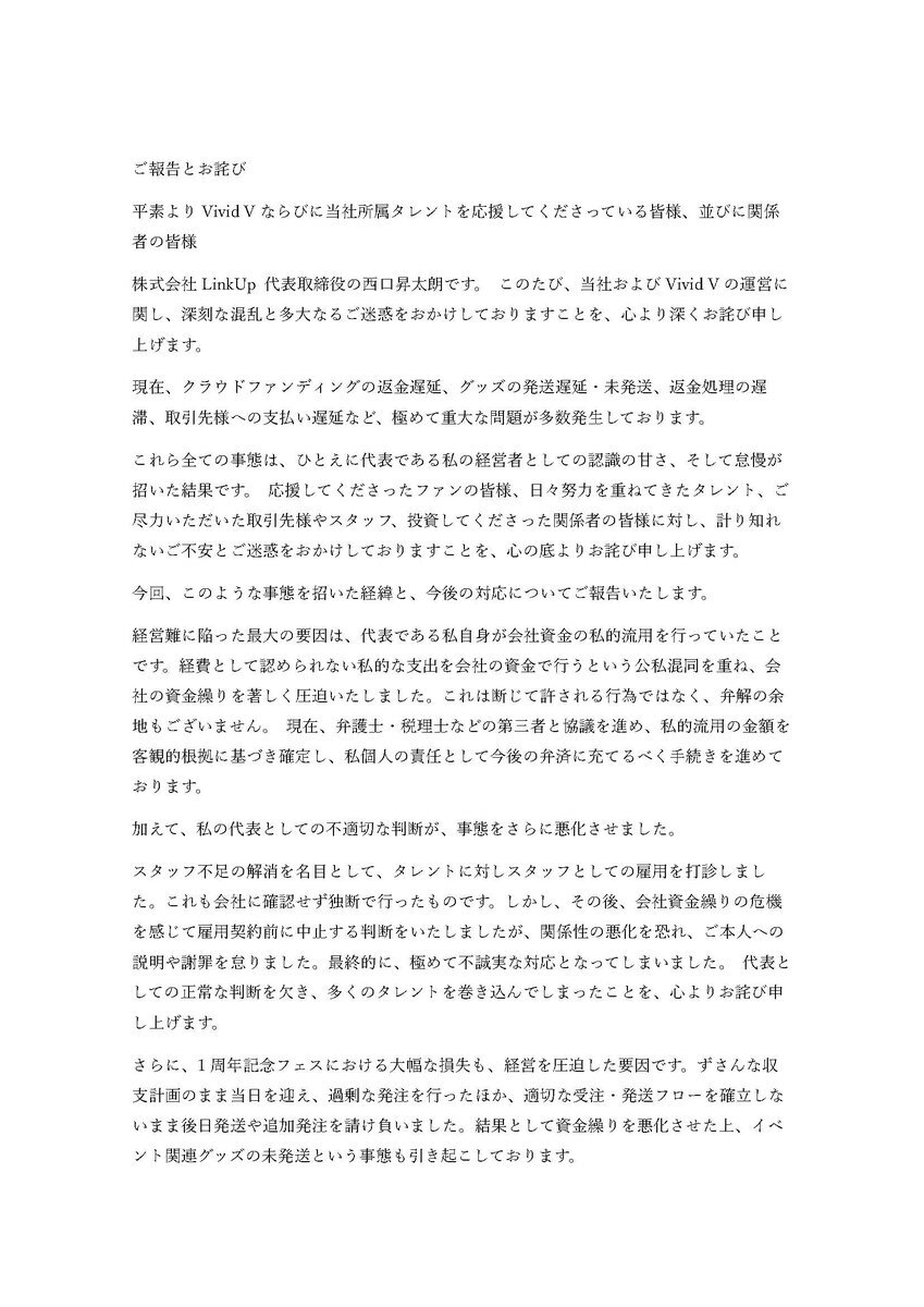え?これ、犯罪者本人の謝罪文で許されるもんなん?? 泥棒が 「私がAさん宅に泥棒に入りました。現在、犯人である私自身が弁護士を交えてどのようなものを盗んだのか確認しています。ちなみにお金はなく破産するので返せません」 て言ってるのと同じじゃない?意味わからん。 x.com/vividv_81/stat…