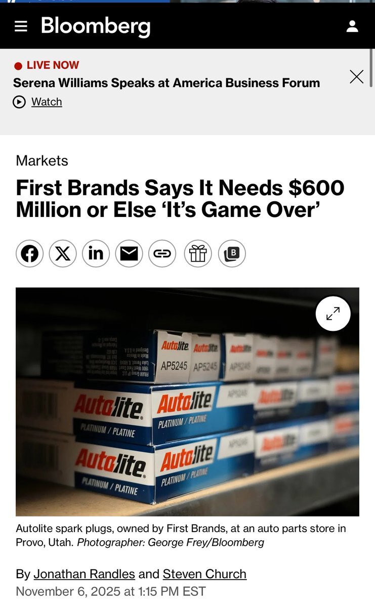 「ファースト・ブランズ、6億ドル必要、さもなくば『ゲームオーバー』」 「ファースト・ブランズ・グループの弁護士は、自動車部品会社が即時閉鎖を回避するには、残りの約6億ドルの破産資金を利用する必要があると述べた。 x.com/kshaughnessy2/…
